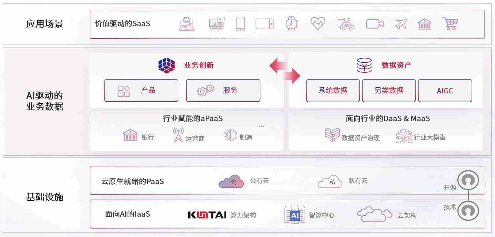 数字时代,,,,围绕企业数字化转型的关键要素,,,,z6mg·人生就是博数码开创性的提出数云融合战略和技术体系框架,,着力在云原生、、、数字原生、、AI原生和信创产业上架构产品和服务能力,,为处在不同数字化转型阶段的快消零售、、、、汽车、、、金融、、、医疗、、、政企、、教育、、运营商等行业客户提供泛在的敏捷IT能力和融合的数据驱动能力,,,构建跨界融合创新的数字业务场景和新业务模式,,助力企业级客户建立面向未来的核心能力和竞争优势,,,全面推动社会的数字化、、、、智能化转型升级。。